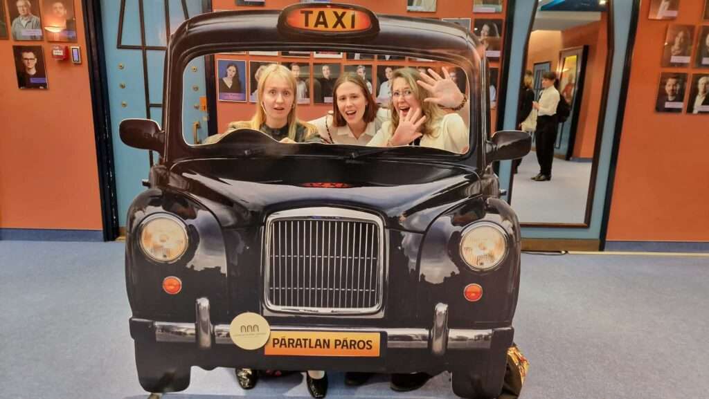 A Hallgató Magazintól érkezve lehetőségünk nyílt az előadás után a kulisszák mögé is betekinteni, felmenni a színpadra. Így személyesen is megtapasztalhattuk, milyen térben játszottak a színészek, hol várakoztak, öltöztek sebtében, milyen kellékeket használtak. Különleges élmény volt ez számomra, és az előadás alatt is nagyon jól éreztem magam! Ráadásul a plakáton szereplő karton-taxival is fényképezkedtünk, ami szintén humoros pillanatokat szült mindnyájunk számára.
